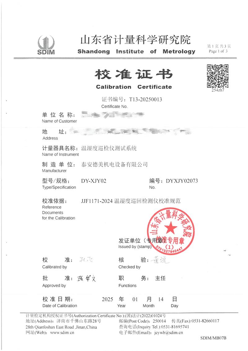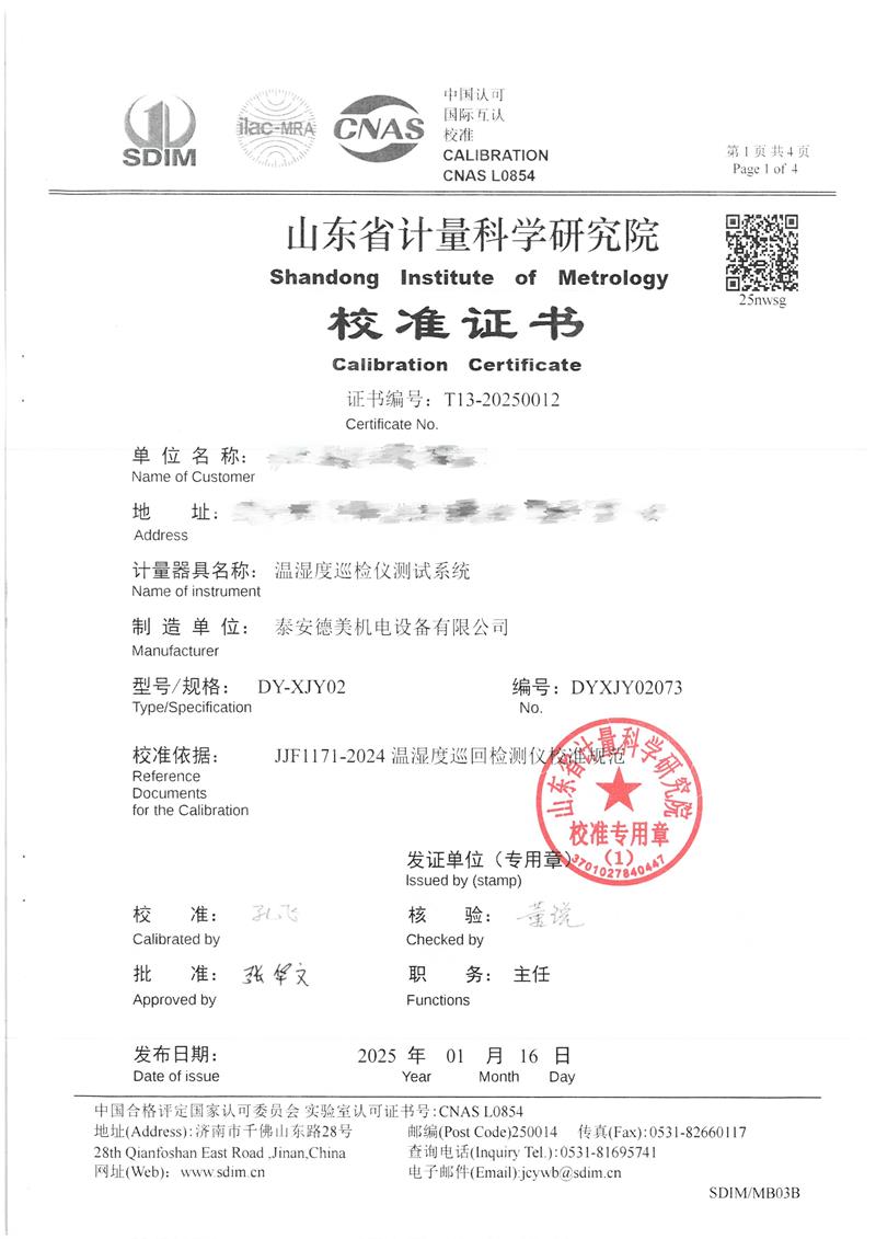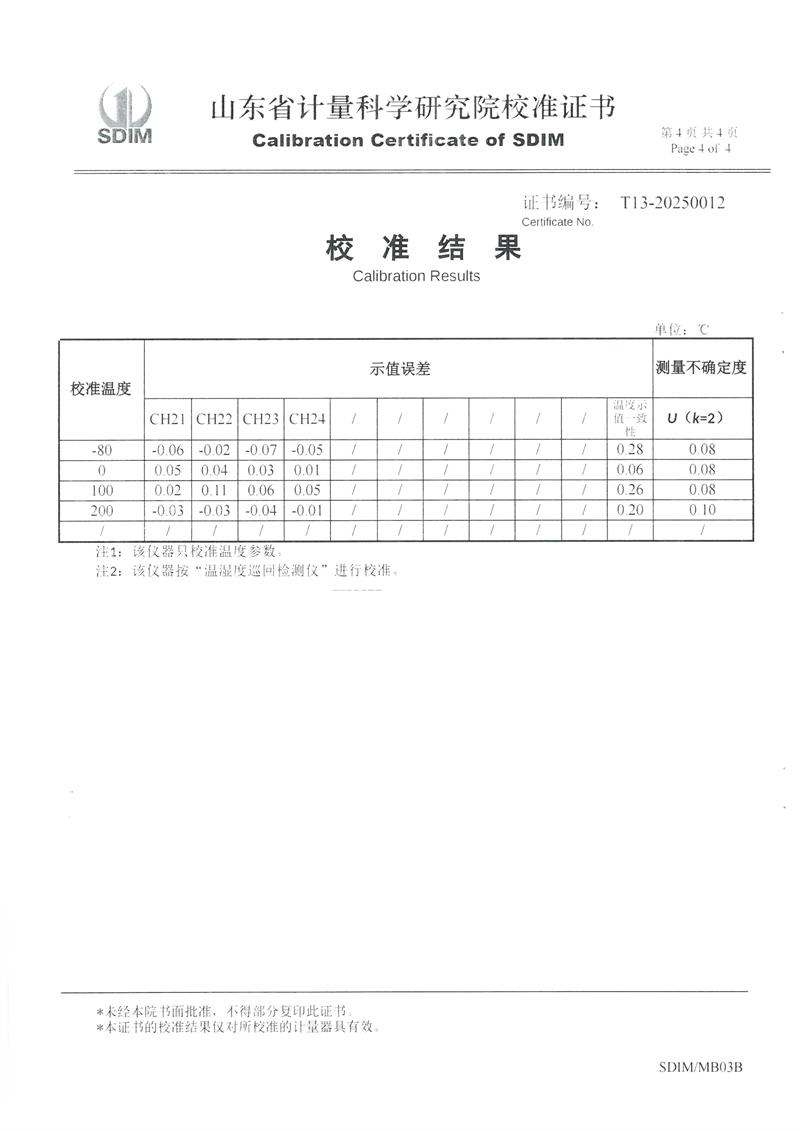 | 上一條:低溫浴式面源黑體爐(-50-80℃)校準證書(shū) | 下一條:高精度制冷恒溫槽(-80~100℃)校準證書(shū) |