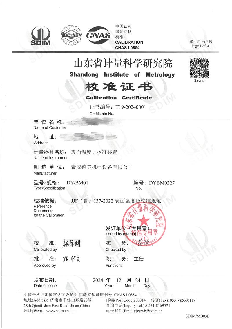| 上一條:中溫腔式黑體爐(50~600℃)校準證書(shū) | 下一條:高精度制冷恒溫槽(-80~100℃)校準證書(shū) |
