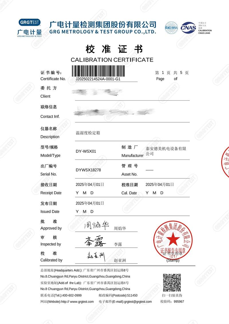 溫濕度檢定箱18278(-5~65℃)校準證書(shū) 2025-4-18 本文被閱讀 3604 次