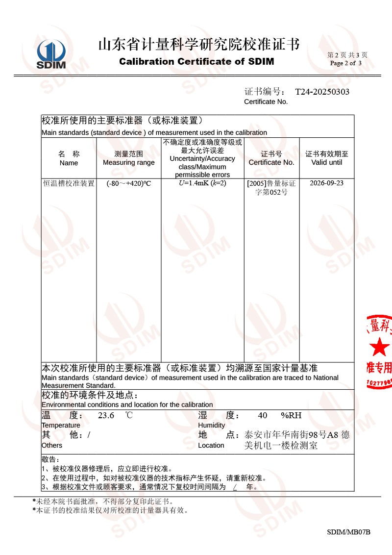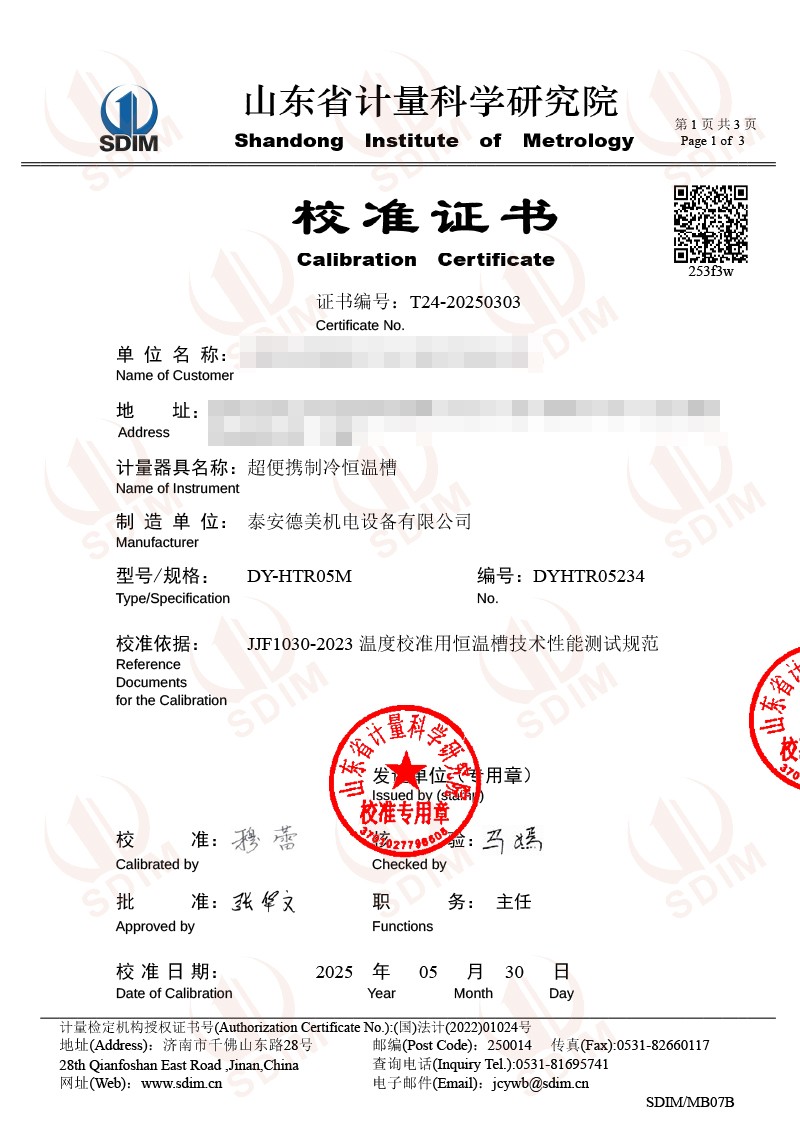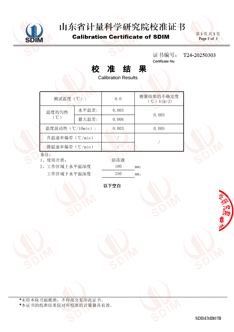 | 上一條:腔式黑體輻射源(800-1450℃)校準證書(shū) | 下一條:高精度制冷恒溫槽(-80~100℃)校準證書(shū) |