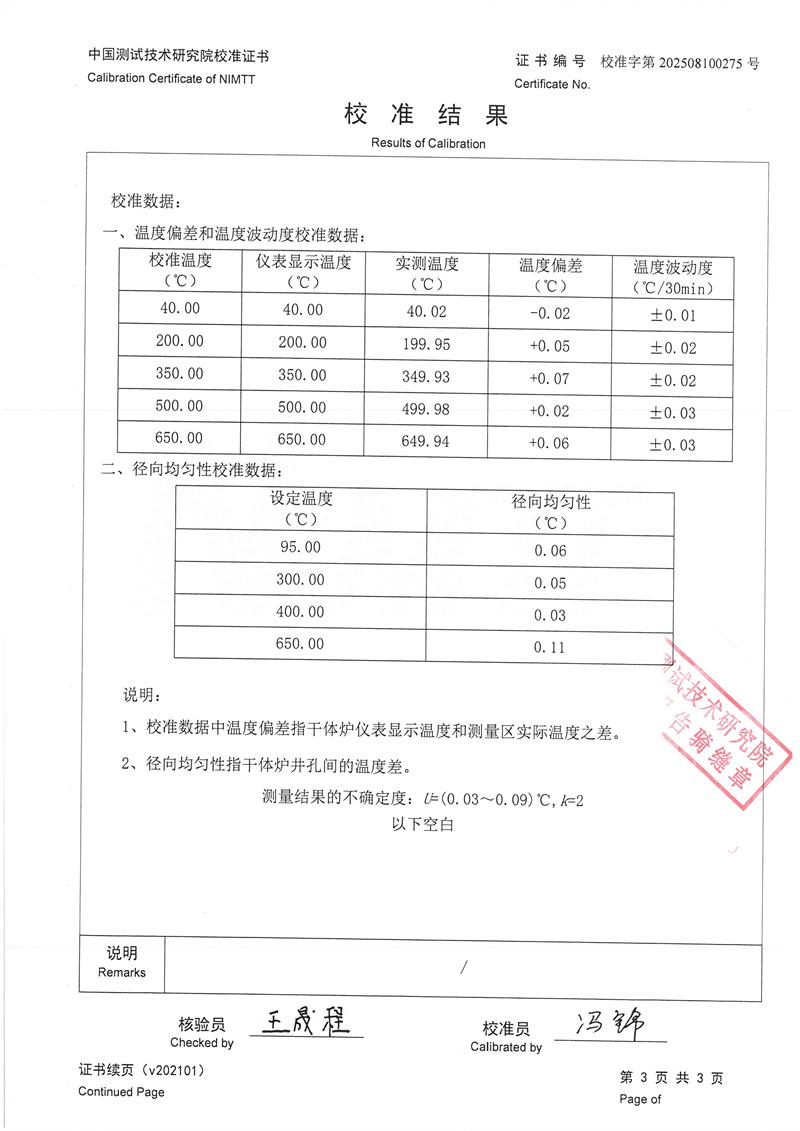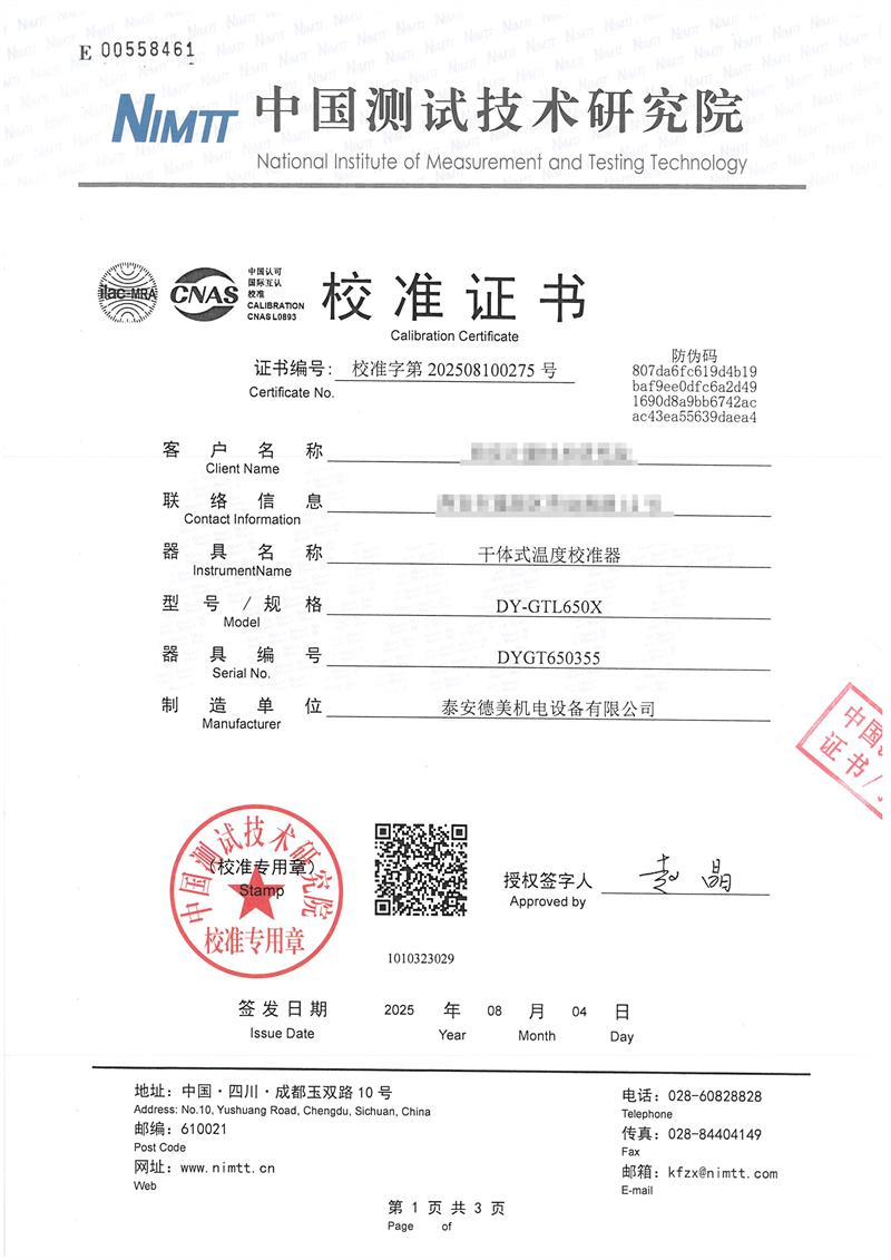 干體式溫度校準器(40~650℃)校準證書(shū) 2025-8-6 本文被閱讀 2744 次