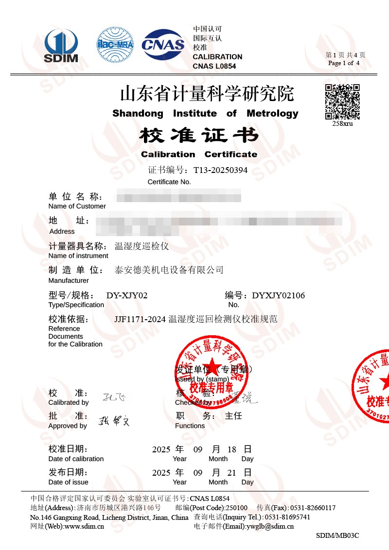 溫濕度巡檢儀校準證書(shū) 2025-9-23 本文被閱讀 1629 次