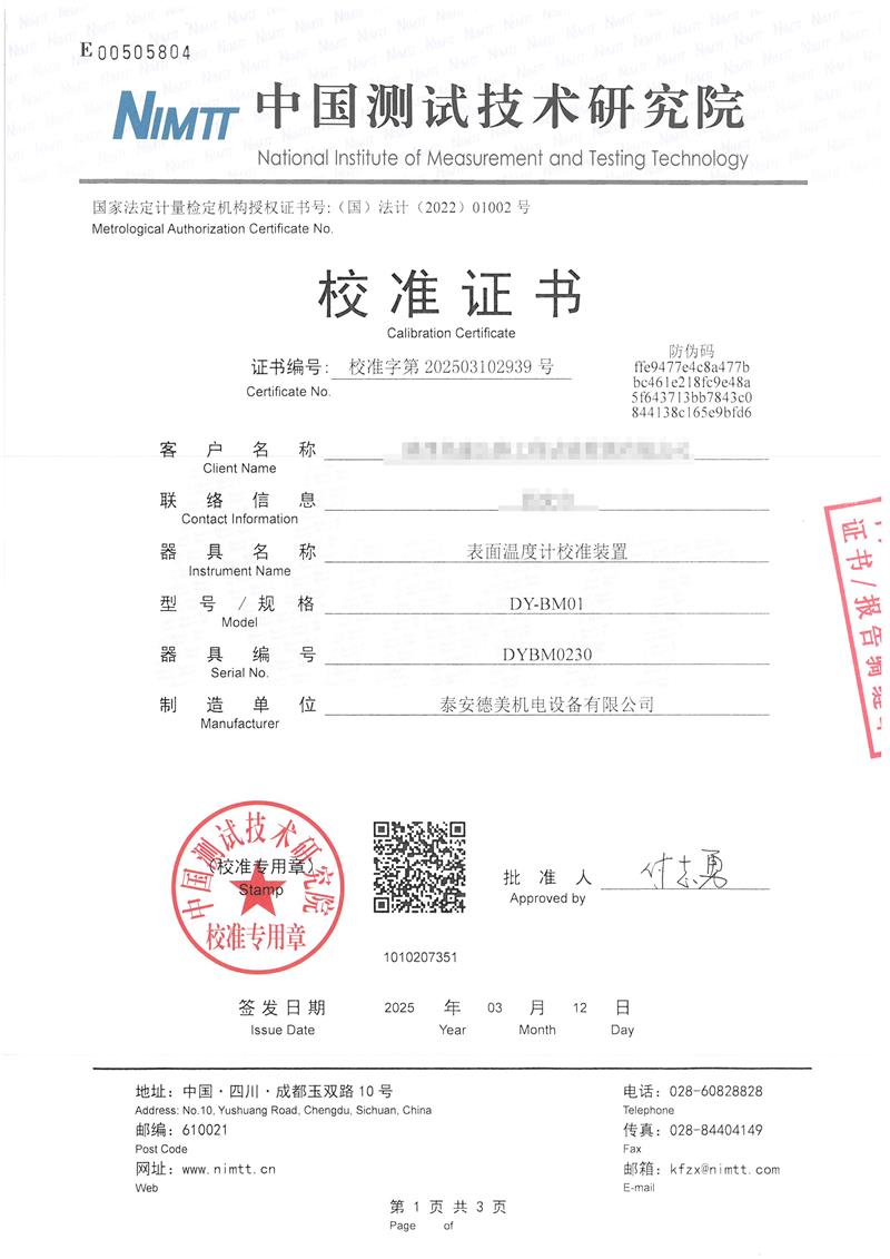 上一條:DY-BM02型表面溫度計校驗爐下一條:高精度制冷恒溫槽(-80~100℃)校準證書(shū)