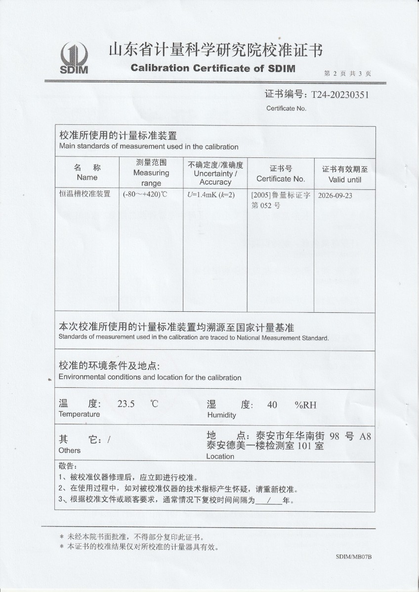 | 上一條:中國科學(xué)院上海技術(shù)物理研究所-通用測試平臺熱源部件(DYHTM546) | 下一條:高精度制冷恒溫槽(-80~100℃)校準證書(shū) |