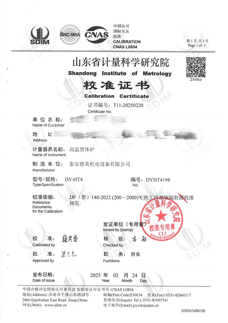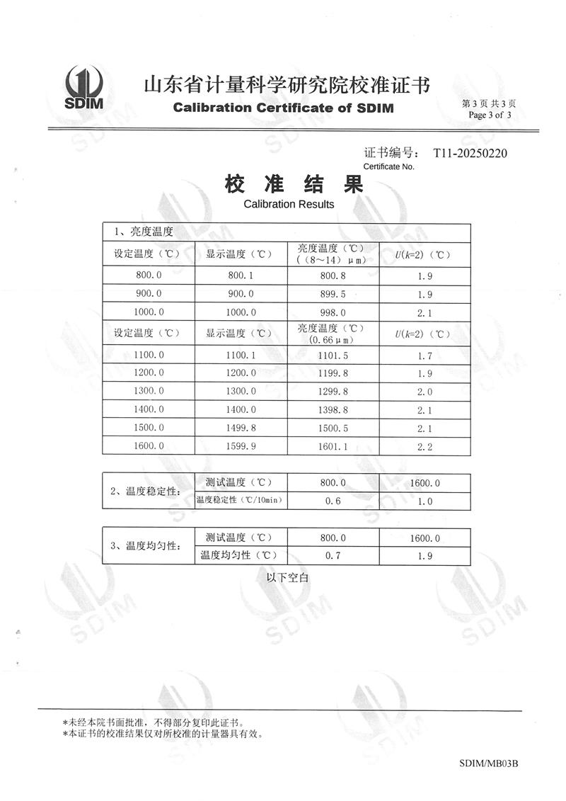 高溫黑體爐(800~1600℃)校準證書(shū) 2025-2-26 本文被閱讀 5440 次