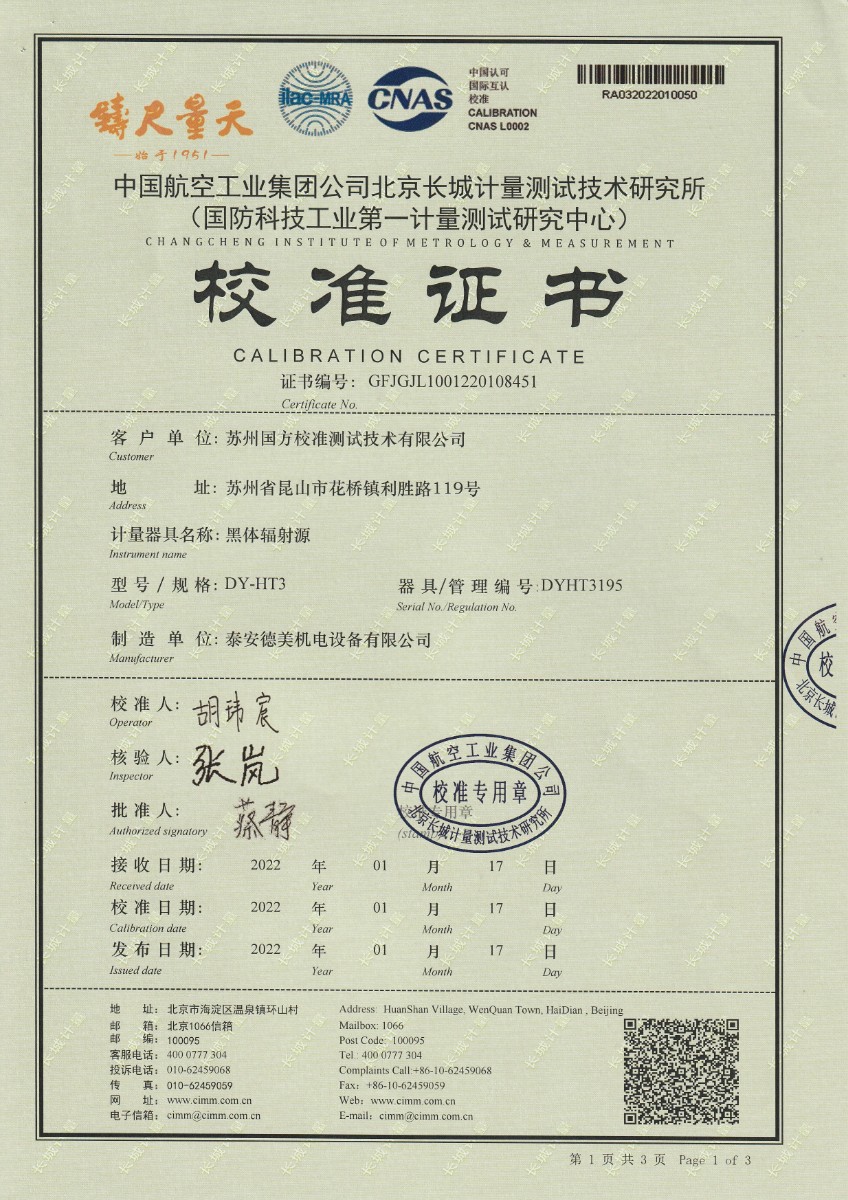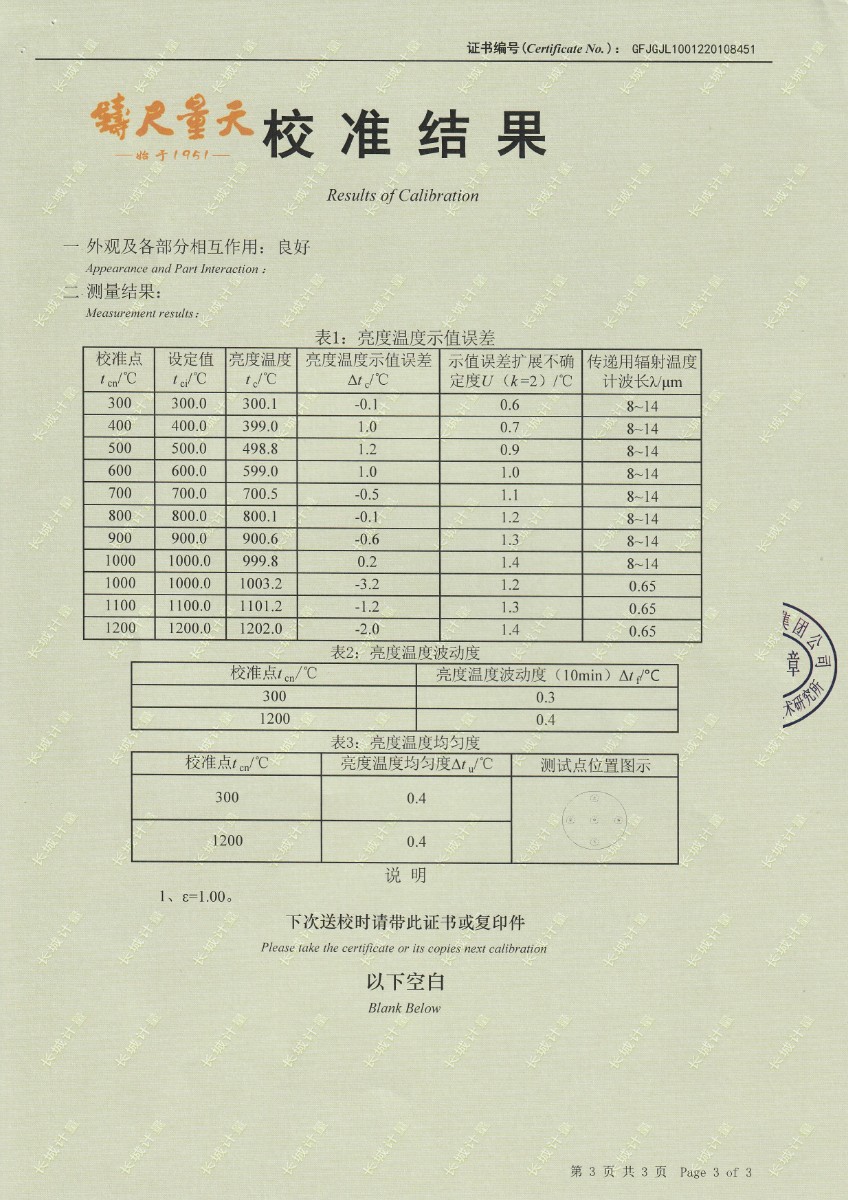 | 上一條:青島加侖檢測技術(shù)服務(wù)有限公司-黑體輻射源 | 下一條:高精度制冷恒溫槽(-80~100℃)校準證書(shū) |