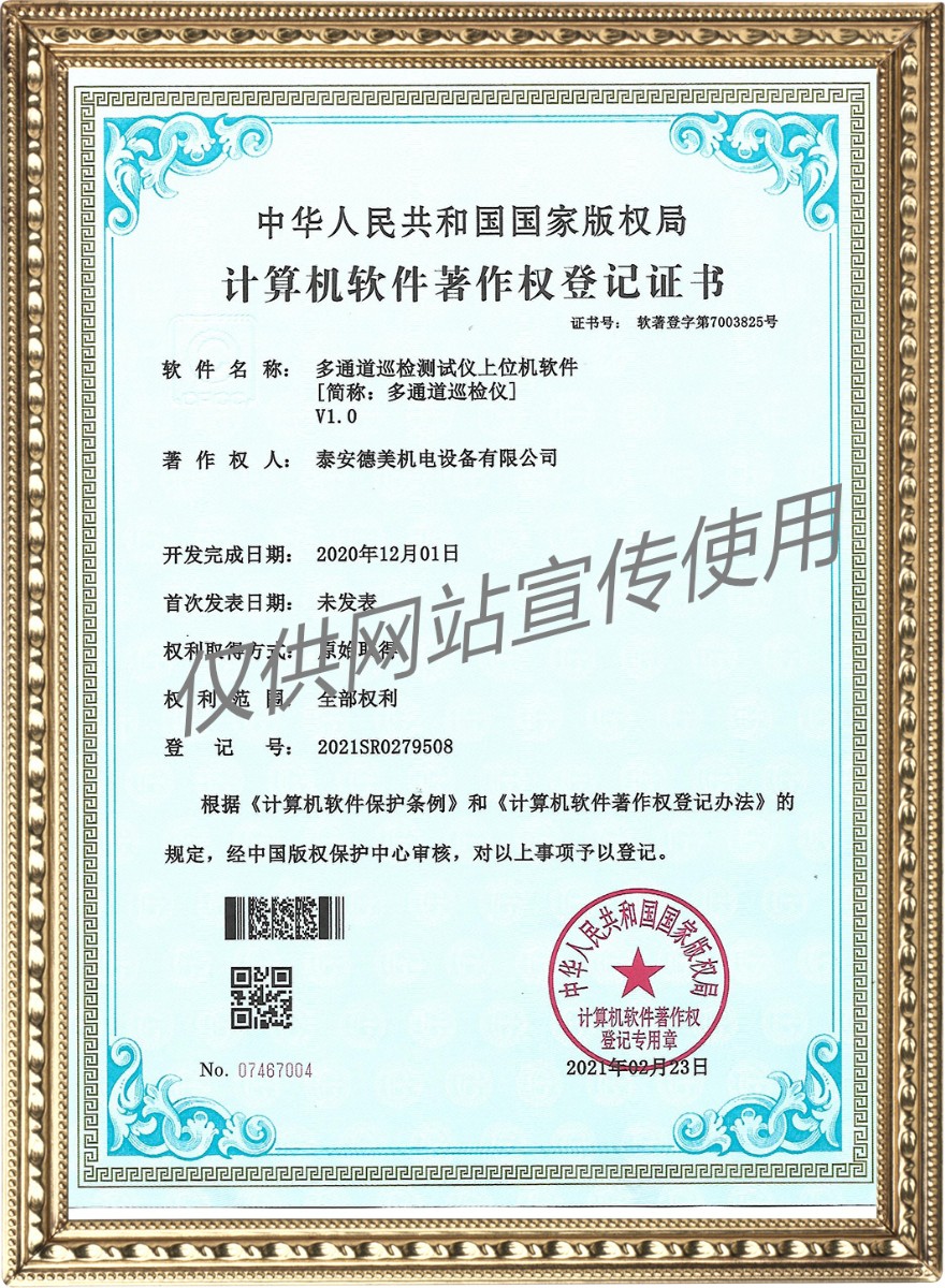 多通道巡檢測試儀上位機軟件V1.0-計算機軟件著(zhù)作權登記證書(shū)