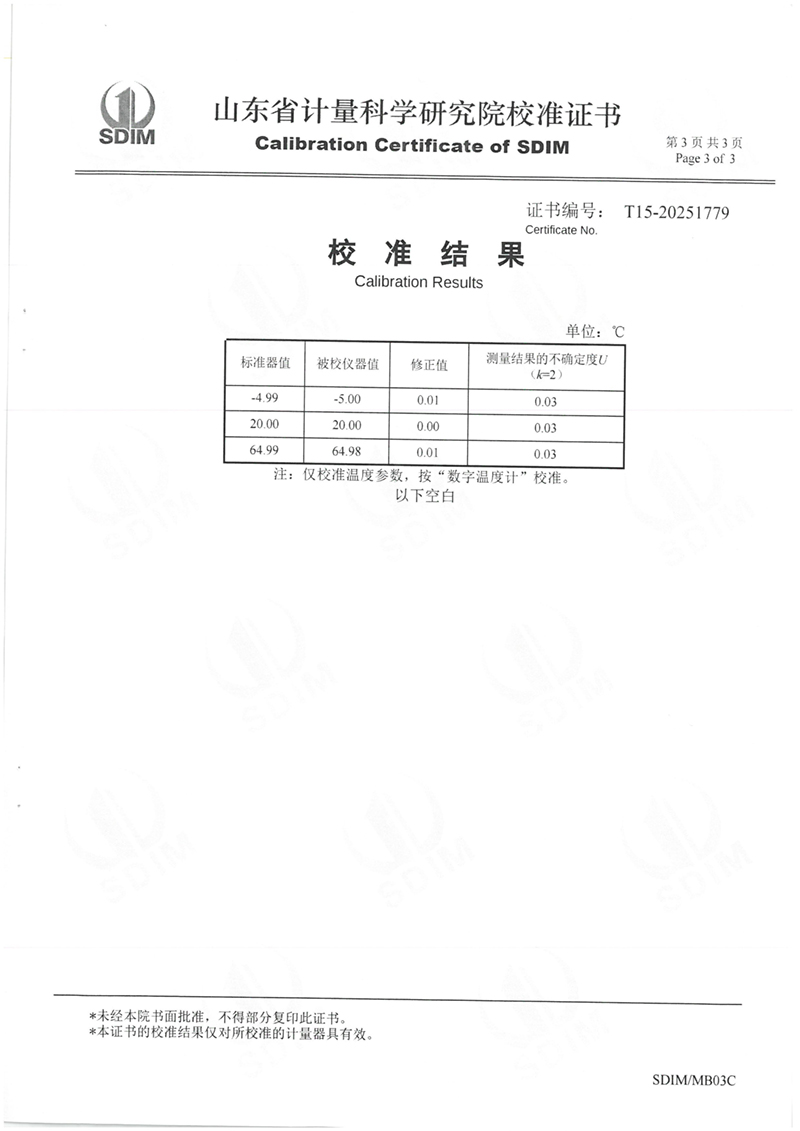 | 上一條: DY-HT1D-100C超低溫黑體輻射源 | 下一條:高精度制冷恒溫槽(-80~100℃)校準證書(shū) |