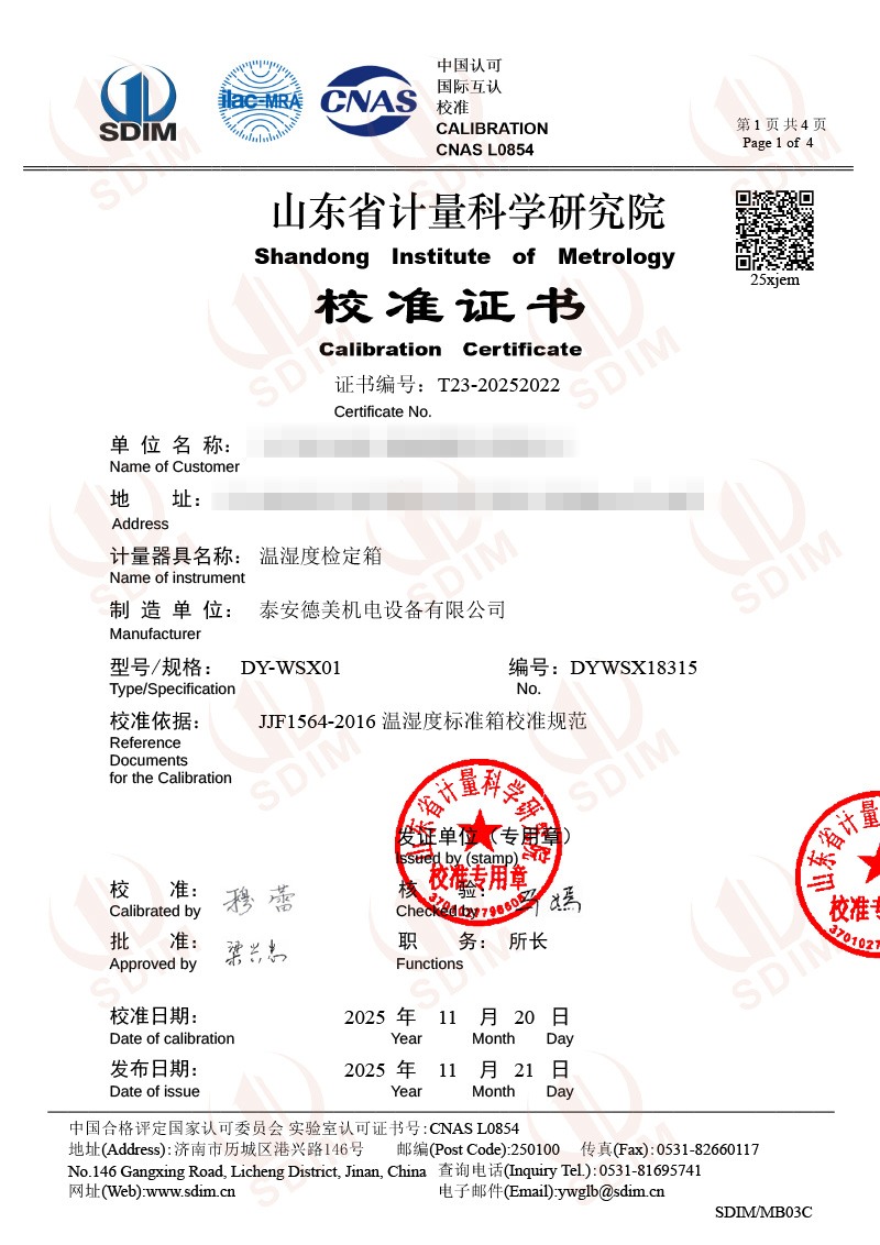 溫濕度檢定箱校準證書(shū) 2025-11-25 本文被閱讀 1102 次