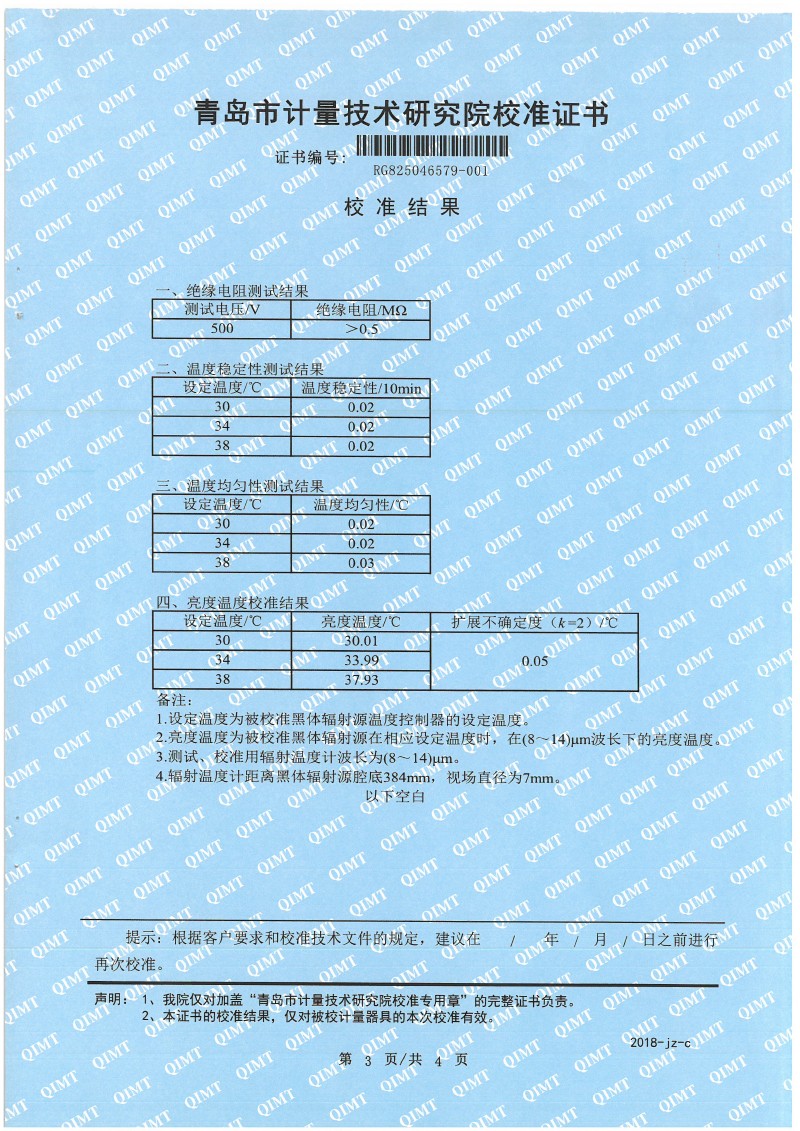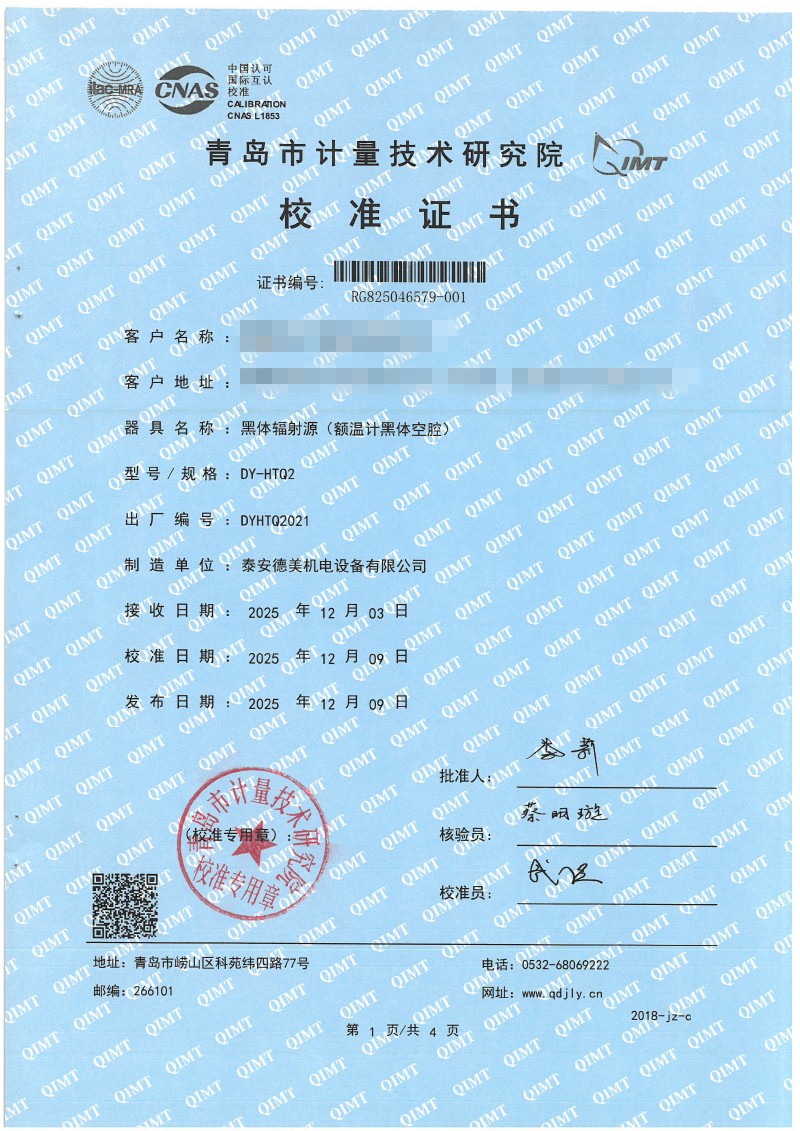 額溫計黑體空腔校準證書(shū) 2025-12-18 本文被閱讀 439 次