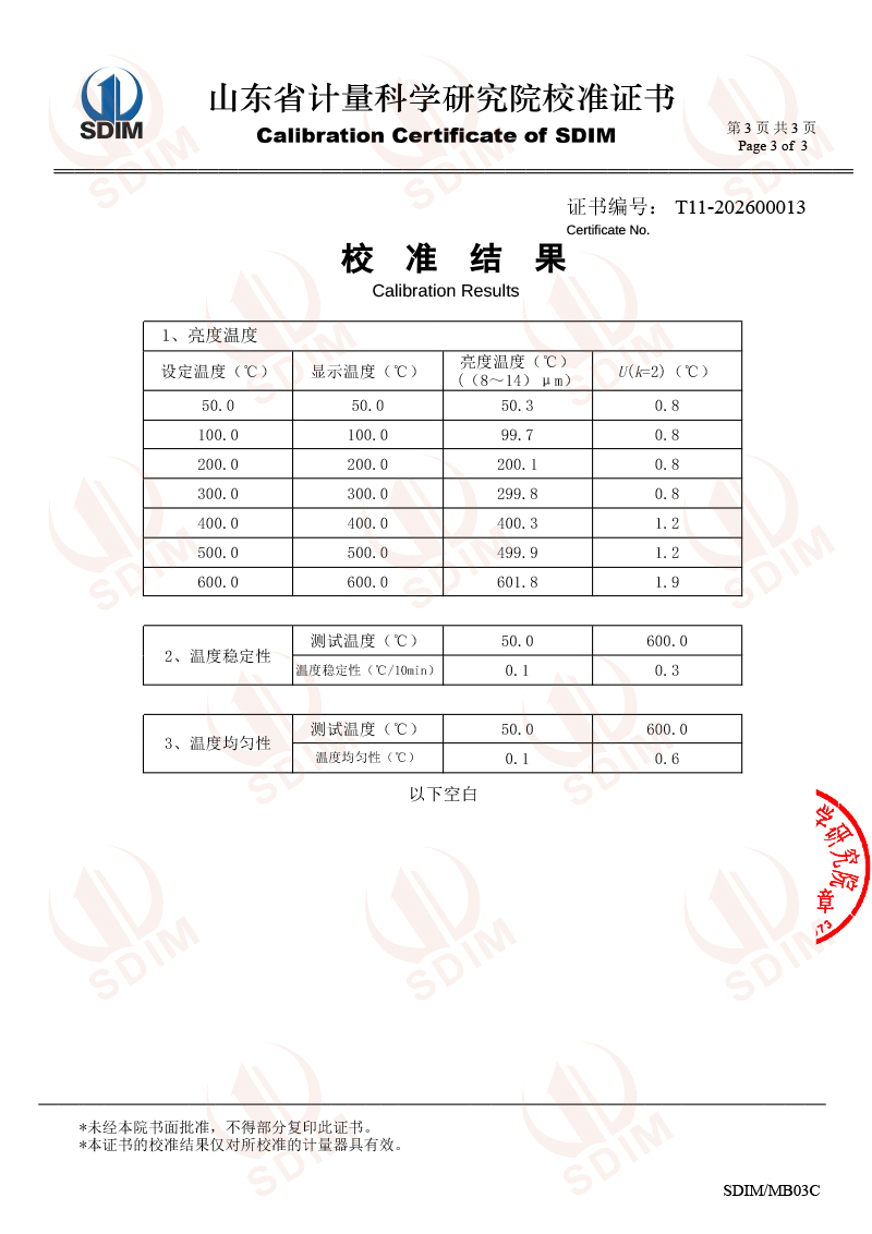 中溫腔式黑體校準(zhǔn)證書 2026-1-8 本文被閱讀 762 次