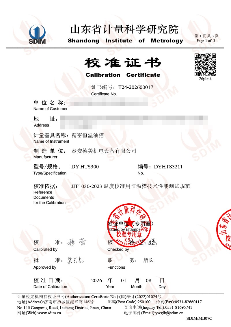 恒溫油槽校準證書 2026-1-13 本文被閱讀 831 次