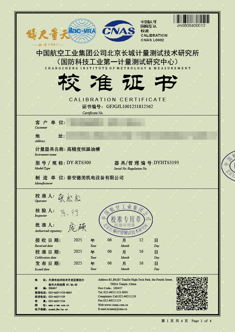 | 上一條:高精度制冷恒溫(-40-100℃)校準證書(shū) | 下一條:高精度制冷恒溫槽(-80~100℃)校準證書(shū) |