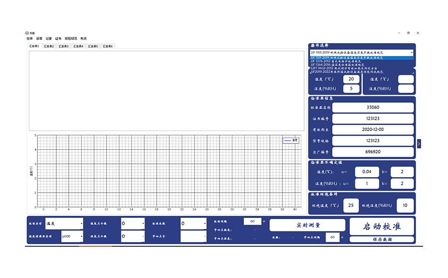 4)根據數據表格中的數據,生成相對應的記錄表信息跟證書(shū)信息??缮蓪?shí)時(shí)曲線(xiàn)。
