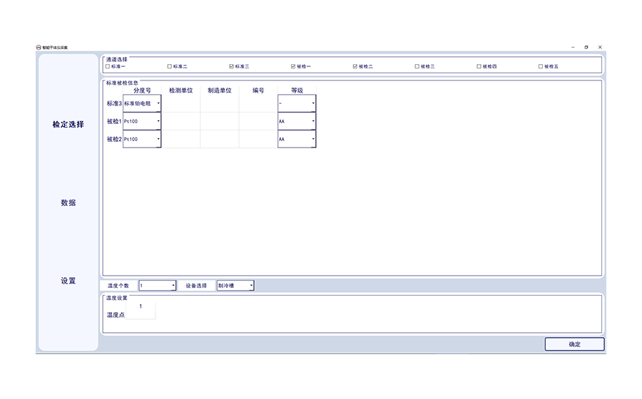 1.可實(shí)現設備的8通道的任意檢定選擇,可選擇通道的分度號類(lèi)型,及被測傳感器的檢測單位、制造單位,傳感器編號及等級