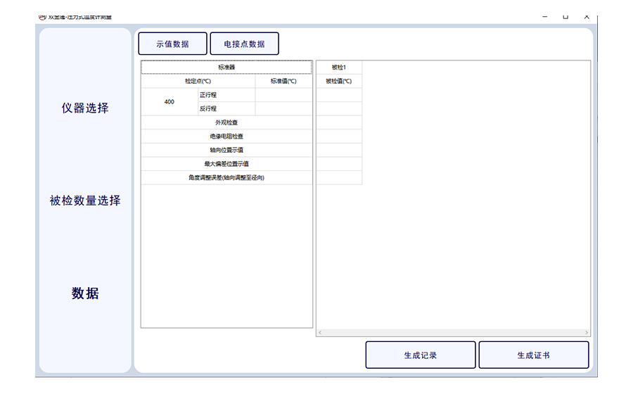 3.軟件可通過(guò)被測傳感器數據,實(shí)現數據的記錄與證書(shū)生成