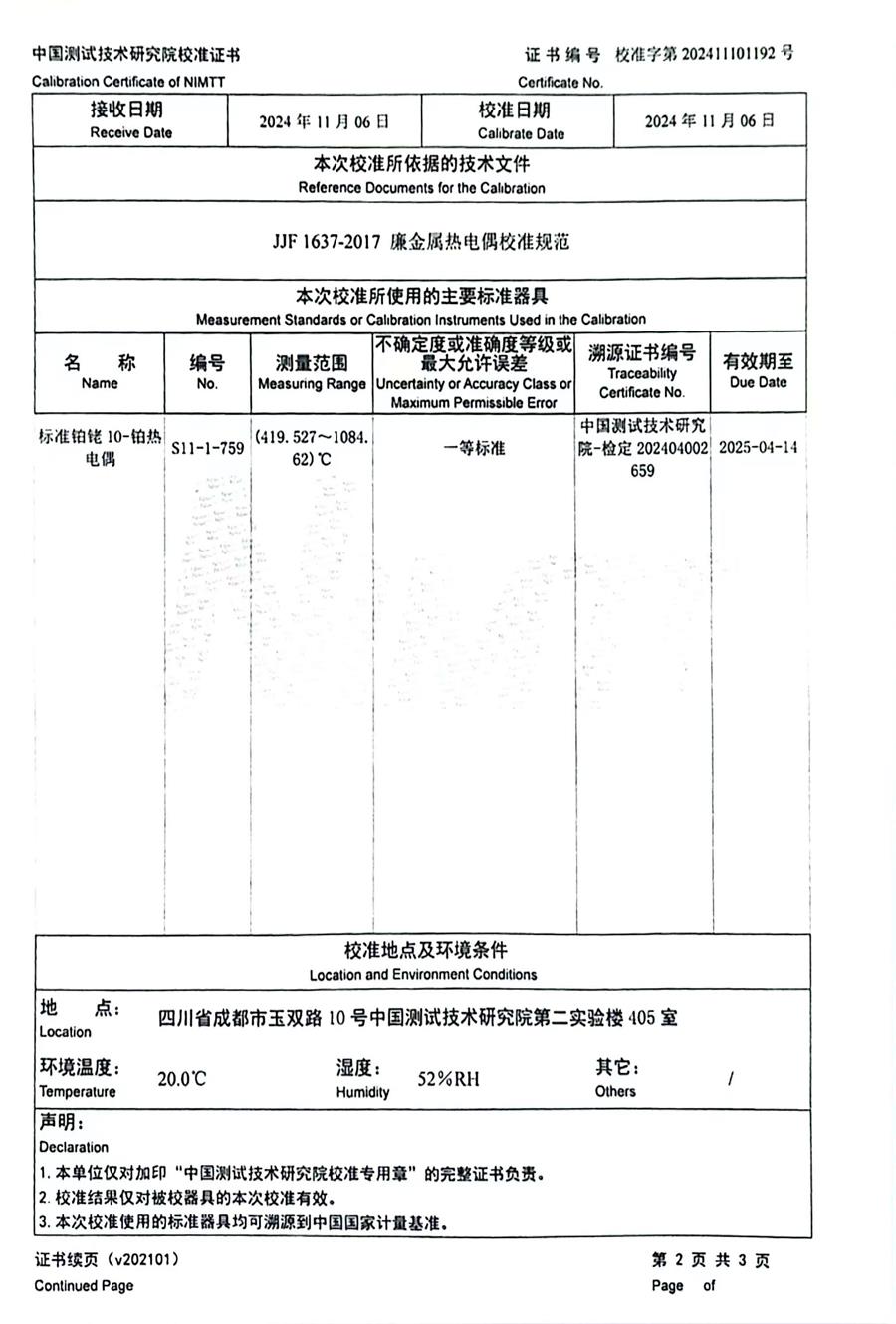 K分度熱電偶校準證書(shū) 2024-11-9 本文被閱讀 7469 次