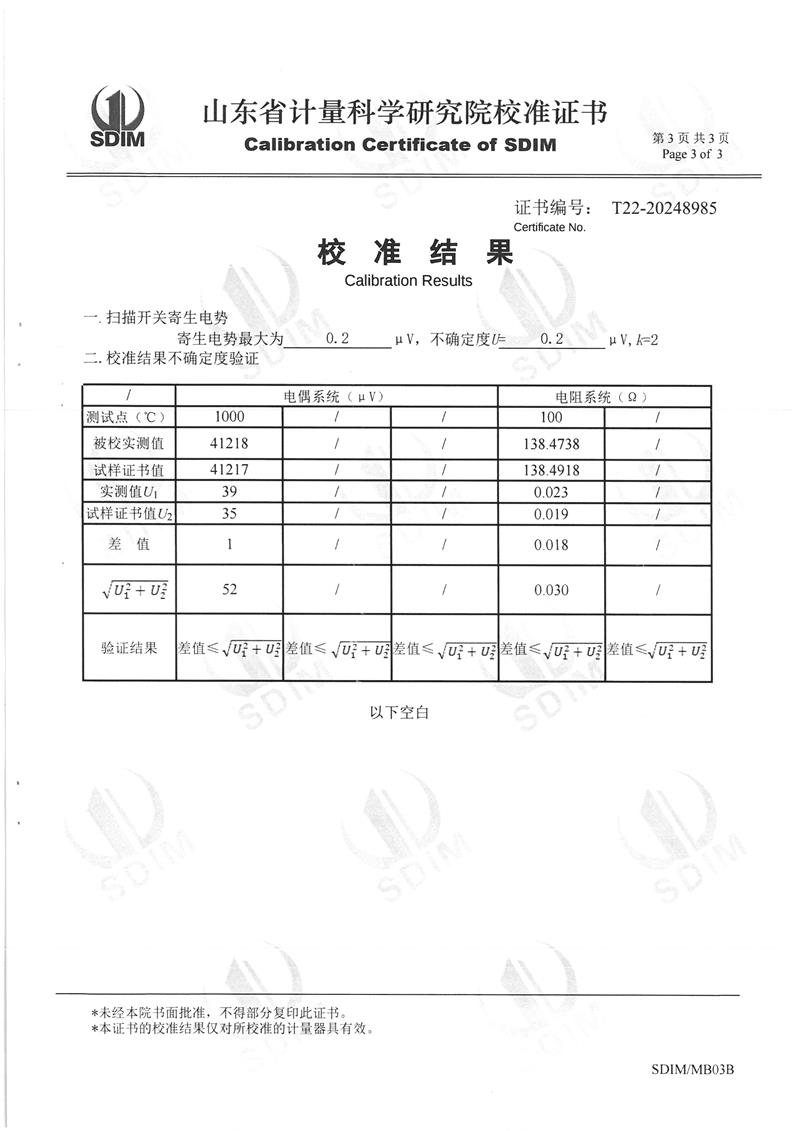 熱電偶、熱電阻自動(dòng)檢測系統校準證書(shū)