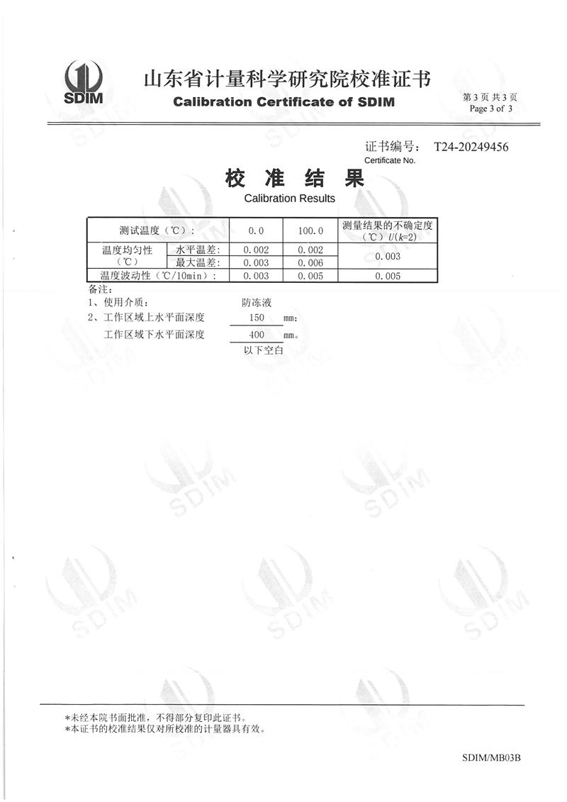 制冷恒溫槽(0~100℃)校準證書(shū)