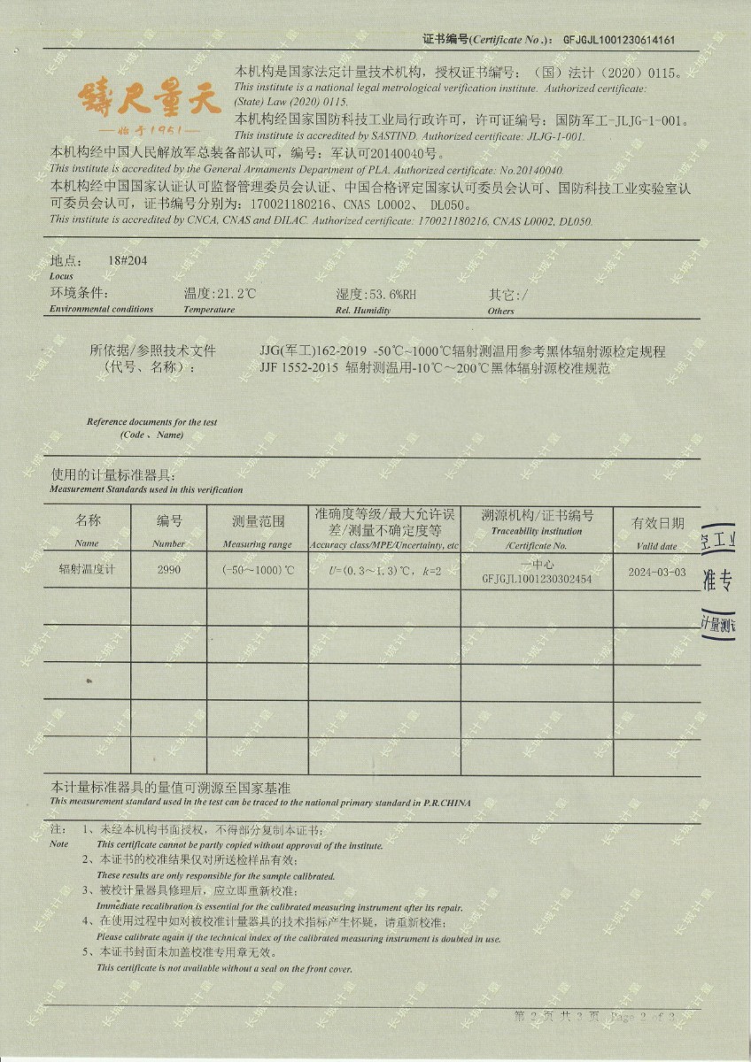 上一條:孝感楚能新能源創(chuàng )新科技有限公司-黑體輻射源下一條:高精度制冷恒溫槽(-80~100℃)校準證書(shū)