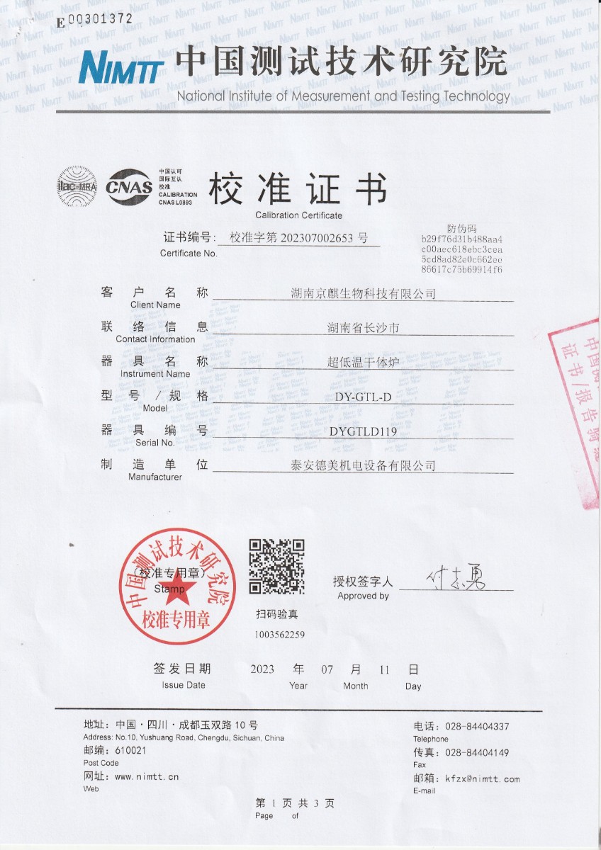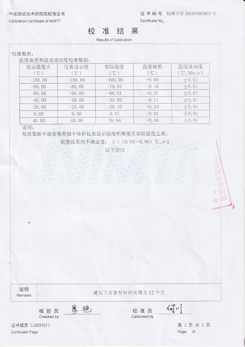 | 上一條:宜昌楚能新能源創(chuàng )新科技有限公司-黑體輻射源 | 下一條:高精度制冷恒溫槽(-80~100℃)校準證書(shū) |