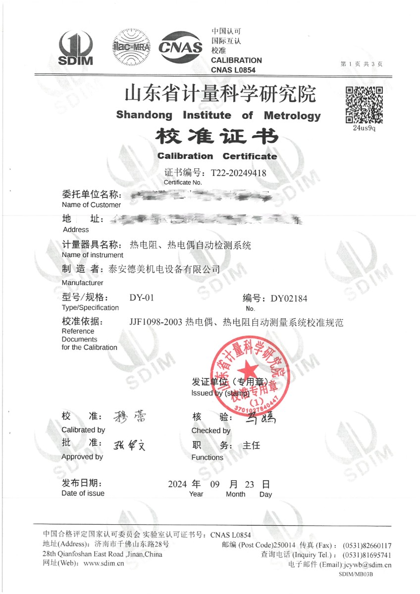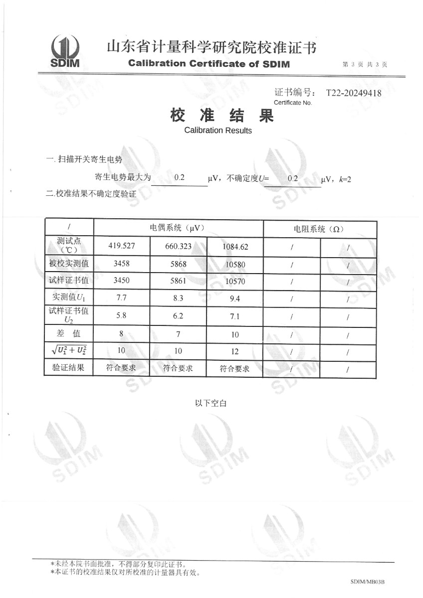 | 上一條:貴金屬熱電偶檢定爐(800~1600℃)校準證書(shū) | 下一條:高精度制冷恒溫槽(-80~100℃)校準證書(shū) |