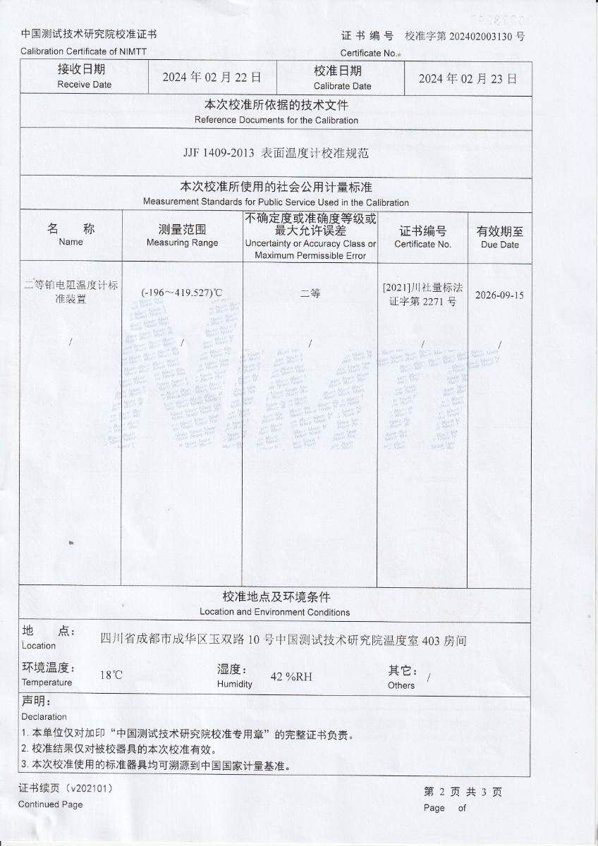 上一條:表面溫度計校準裝置下一條:高精度制冷恒溫槽(-80~100℃)校準證書(shū)