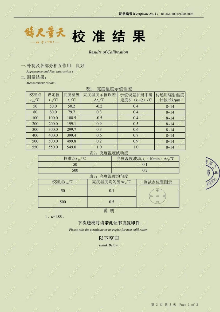 黑體輻射源校準證書(shū) 2024-4-11 本文被閱讀 6562 次
