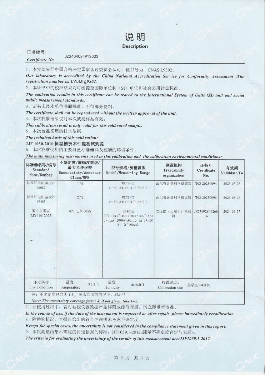 上一條:高精度數字溫度計校準證書(shū)下一條:高精度制冷恒溫槽(-80~100℃)校準證書(shū)