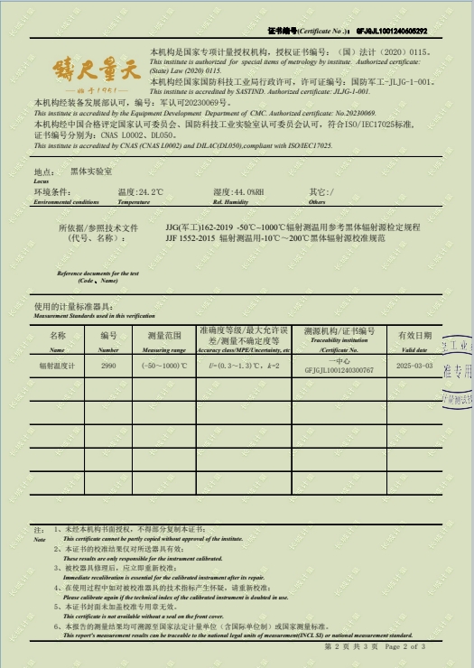 面源黑體輻射源(0-80℃)304所校準證書(shū) 2024-6-18 本文被閱讀 9052 次
