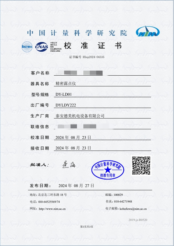 露點(diǎn)儀校準證書(shū) 2024-9-3 本文被閱讀 7840 次