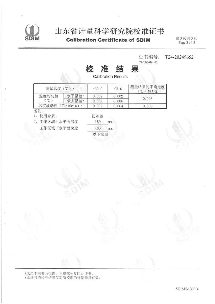 | 上一條:廉金屬熱電偶檢定爐(300-1200℃)校準證書(shū) | 下一條:高精度制冷恒溫槽(-80~100℃)校準證書(shū) |