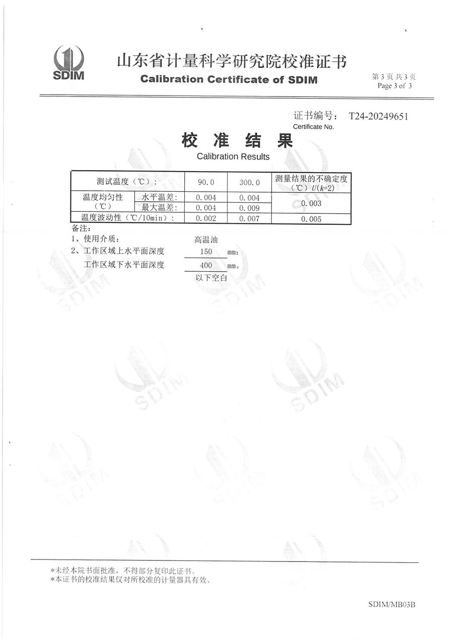 | 上一條:制冷恒溫槽(-30-95℃)校準證書(shū) | 下一條:高精度制冷恒溫槽(-80~100℃)校準證書(shū) |