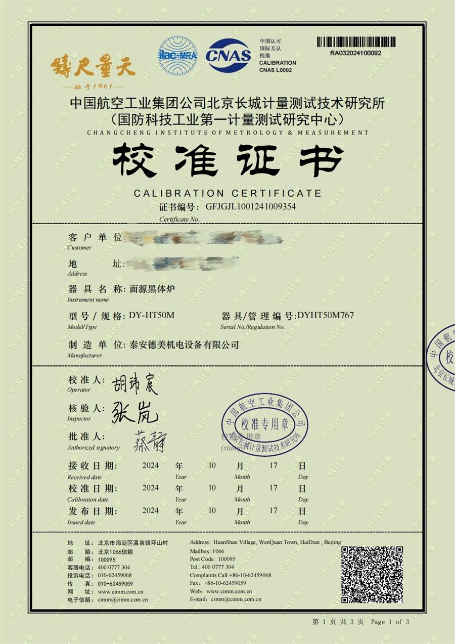 | 上一條:高溫黑體爐(700-1600℃)校準證書(shū) | 下一條:高精度制冷恒溫槽(-80~100℃)校準證書(shū) |