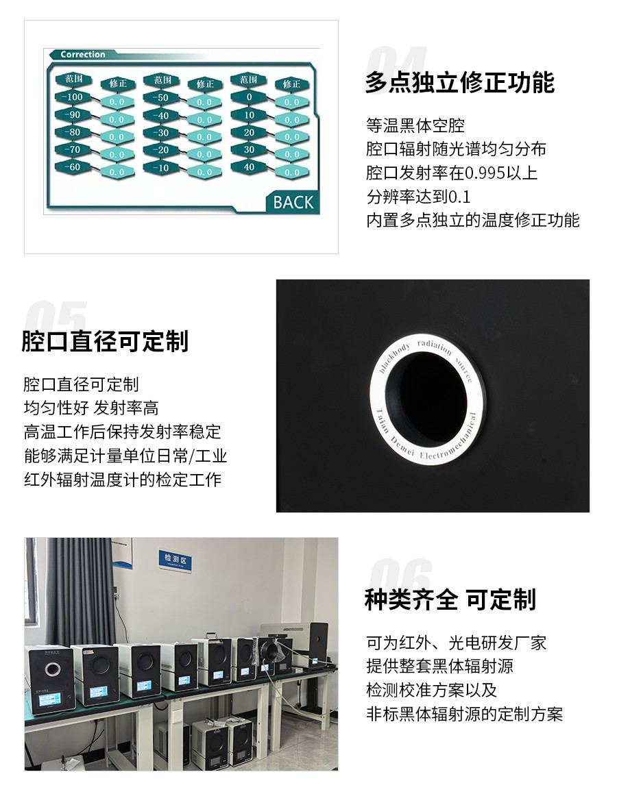 黑體的主要功能是產(chǎn)生一定溫度下的標準輻射。因此在溫度計量中主要用于檢定各種輻射溫度計,如光學(xué)高溫計、紅外溫度計、紅外熱像儀等。