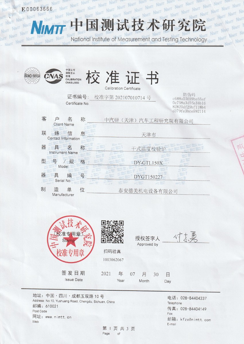 中汽研(天津)汽車(chē)工程研究院有限公司-干式溫度校驗爐 2021-8-6 本文被閱讀 20711 次