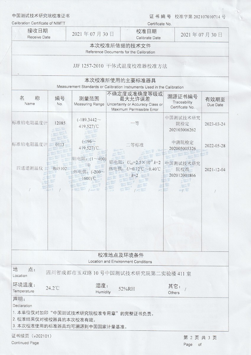 上一條:深圳村田科技有限公司-溫濕度檢定箱下一條:高精度制冷恒溫槽(-80~100℃)校準證書(shū)