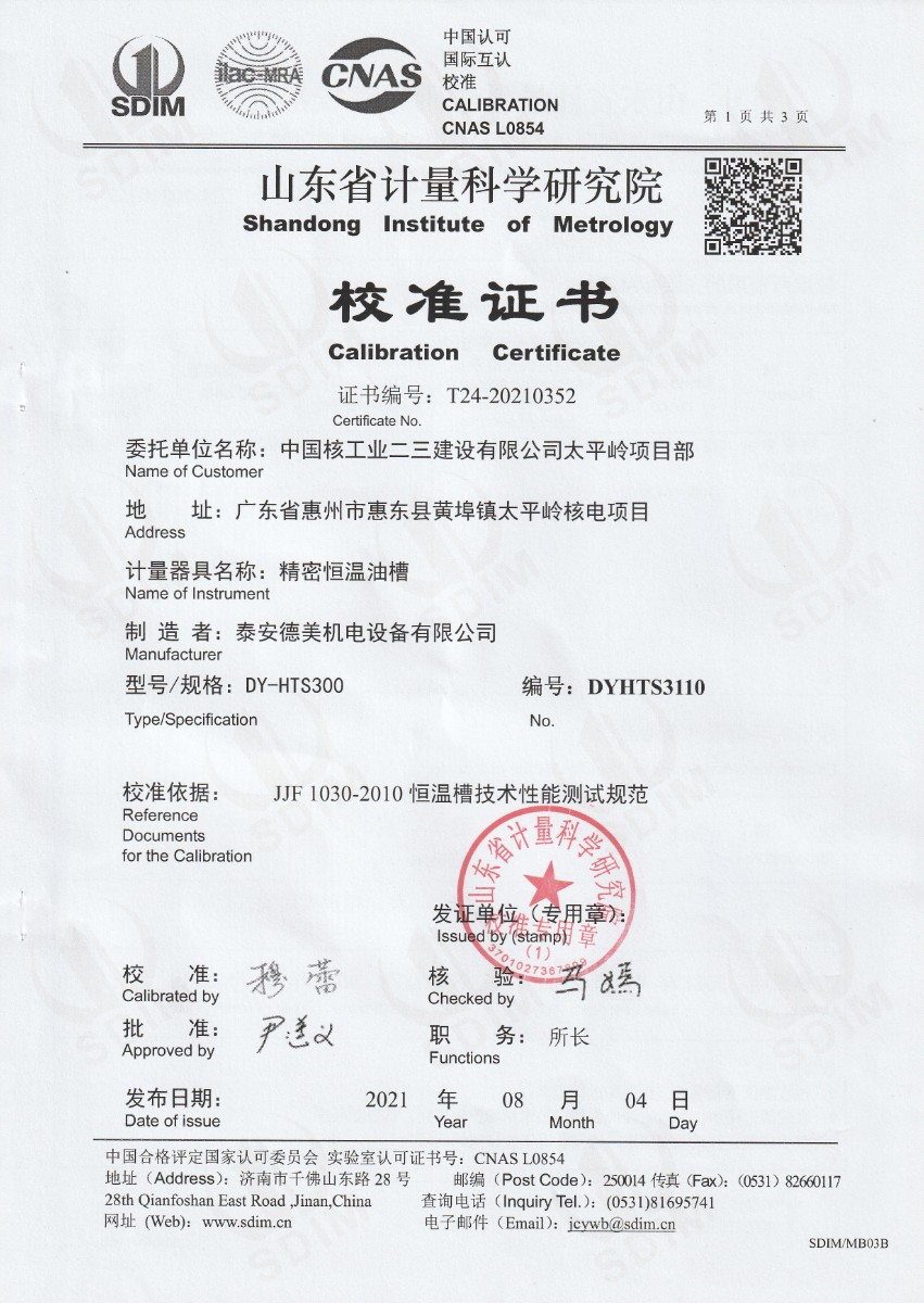 | 上一條:中國核工業(yè)二三建設有限公司太平嶺項目部-低電勢掃描器兼容系統 | 下一條:高精度制冷恒溫槽(-80~100℃)校準證書(shū) |