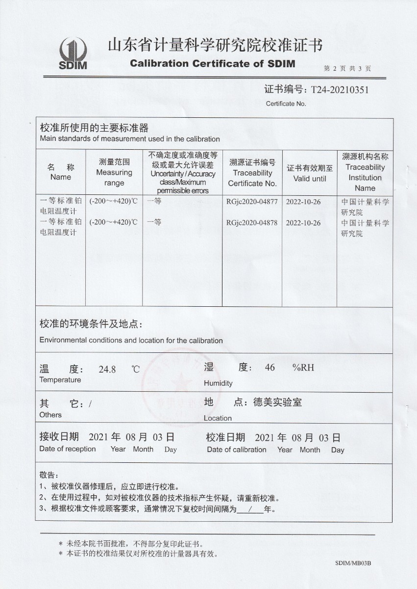 上一條:中國核工業(yè)二三建設有限公司太平嶺項目部-熱電偶檢定爐下一條:高精度制冷恒溫槽(-80~100℃)校準證書(shū)