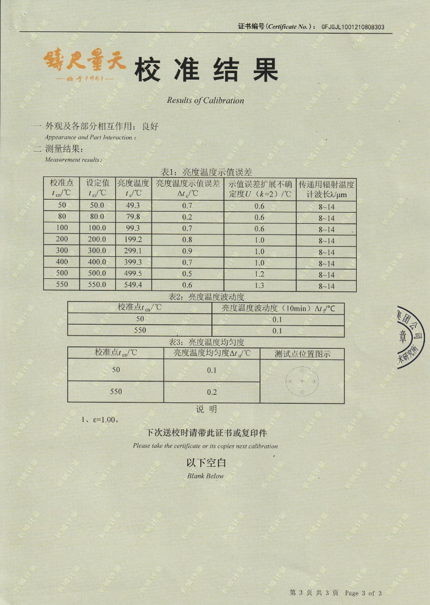 | 上一條:大秦鐵路股份有限公司太原車(chē)輛段-黑體爐 | 下一條:高精度制冷恒溫槽(-80~100℃)校準證書(shū) |