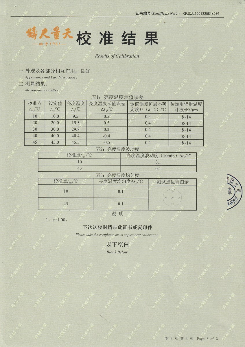 | 上一條:中國科學(xué)院長(cháng)春光學(xué)精密機械與物理研究所-黑體爐DY-HT1-1 | 下一條:高精度制冷恒溫槽(-80~100℃)校準證書(shū) |