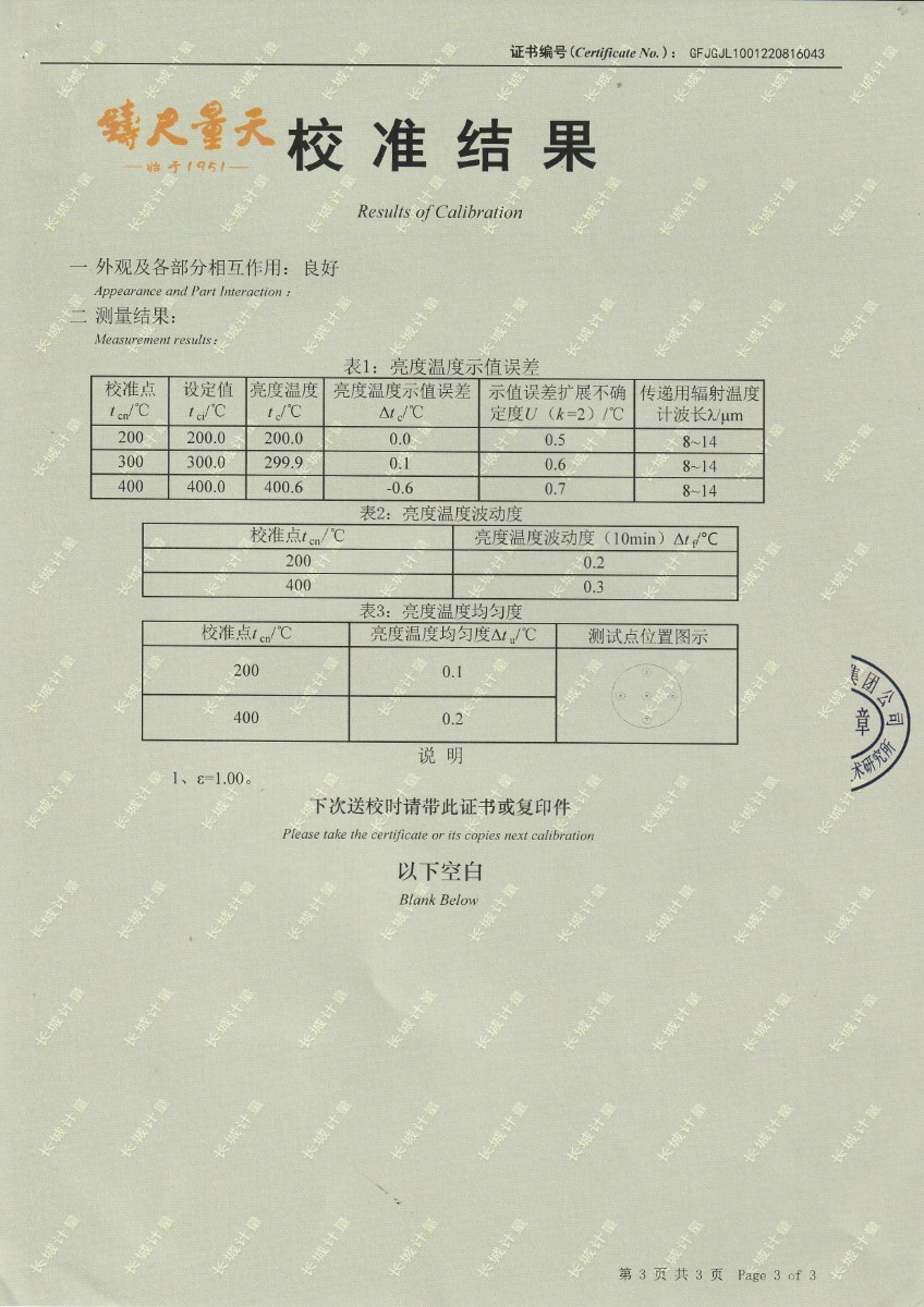 | 上一條:中國科學(xué)院長(cháng)春光學(xué)精密機械與物理研究所-黑體爐DY-HT2-1 | 下一條:高精度制冷恒溫槽(-80~100℃)校準證書(shū) |