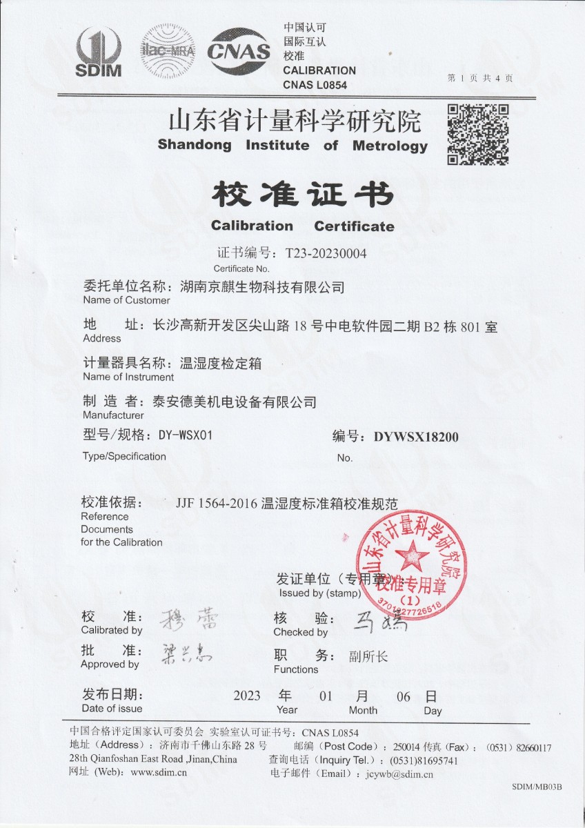 湖南京麒生物科技有限公司 溫濕度檢定箱 2023-1-16 本文被閱讀 14199 次