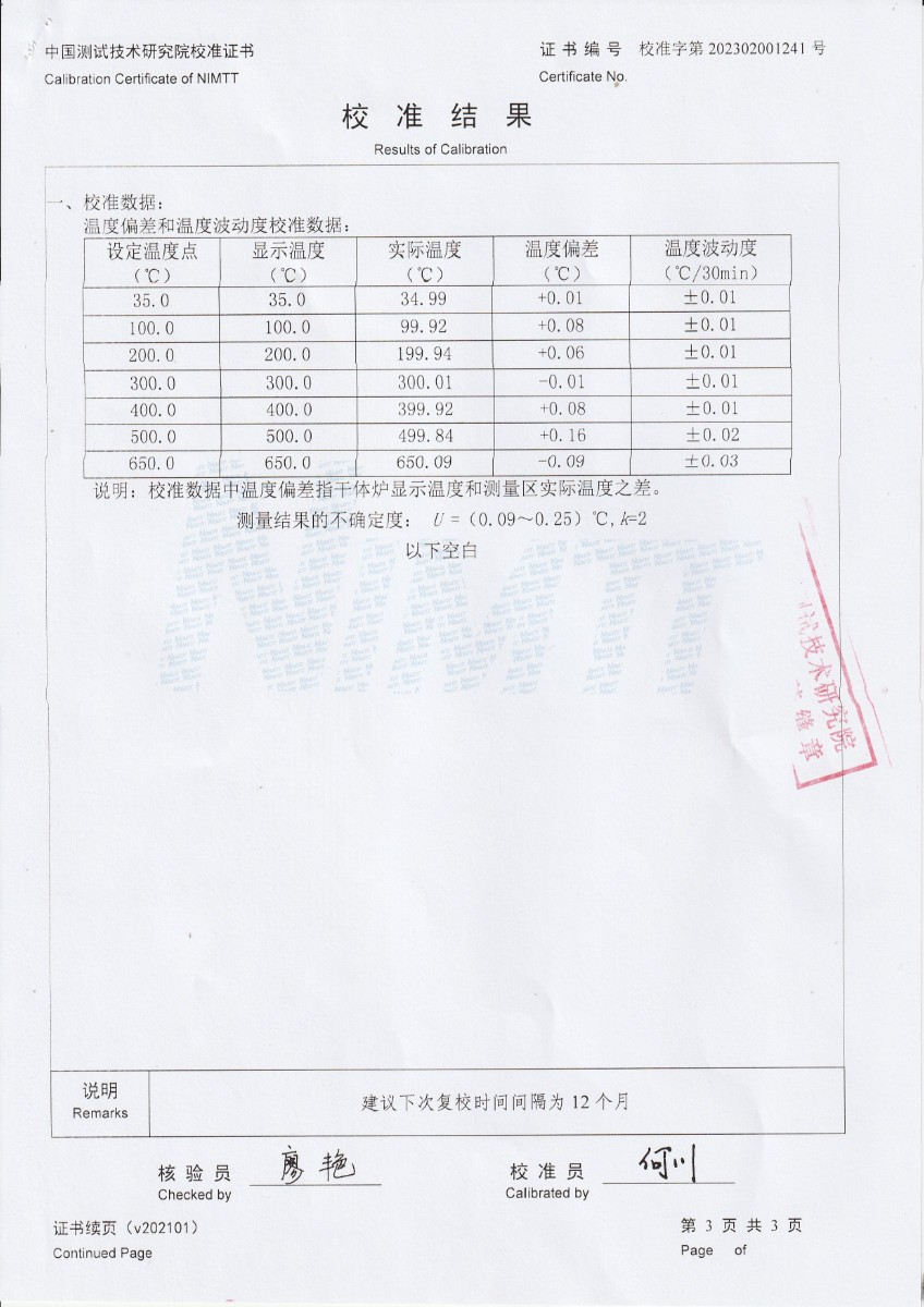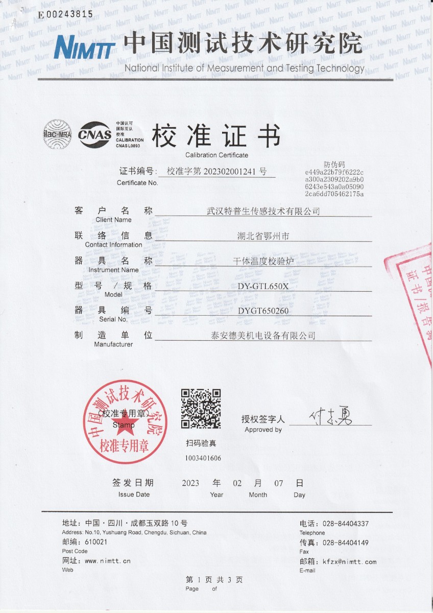 | 上一條:泰安德美機電設備有限公司 TRT4.82 精密輻射溫度計 校準證書(shū) | 下一條:高精度制冷恒溫槽(-80~100℃)校準證書(shū) |