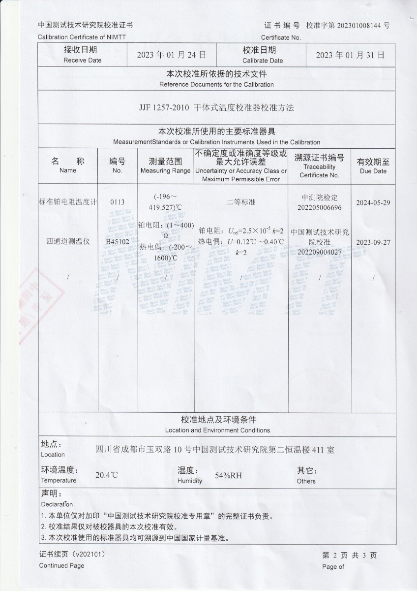 上一條:甘肅東興嘉寧新材料有限公司 干體溫度校驗爐 校準證書(shū)下一條:高精度制冷恒溫槽(-80~100℃)校準證書(shū)
