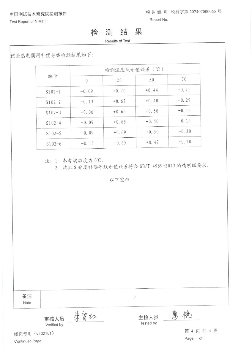 | 上一條:熱電偶用補償導線(xiàn)K分度校準證書(shū) | 下一條:高精度制冷恒溫槽(-80~100℃)校準證書(shū) |