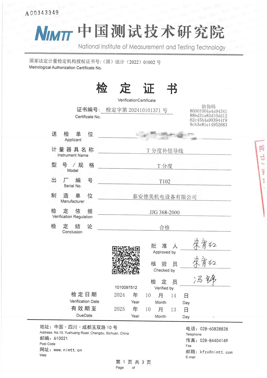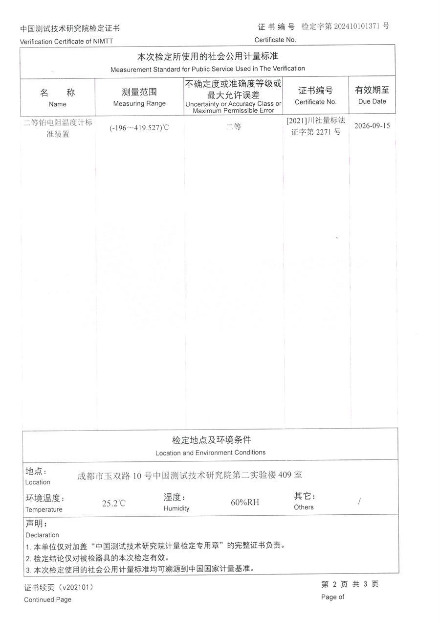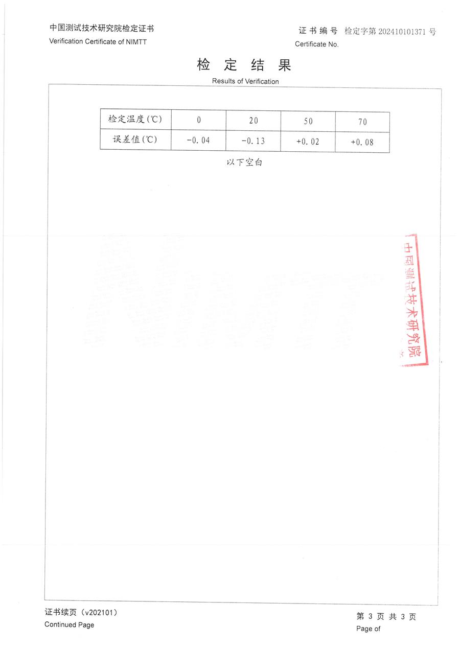 | 上一條:面源黑體爐(室溫+5-300℃)校準證書(shū) | 下一條:高精度制冷恒溫槽(-80~100℃)校準證書(shū) |