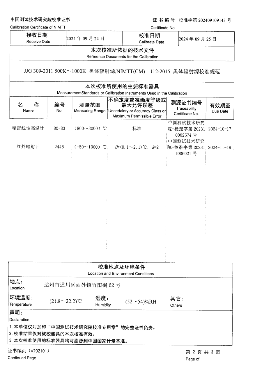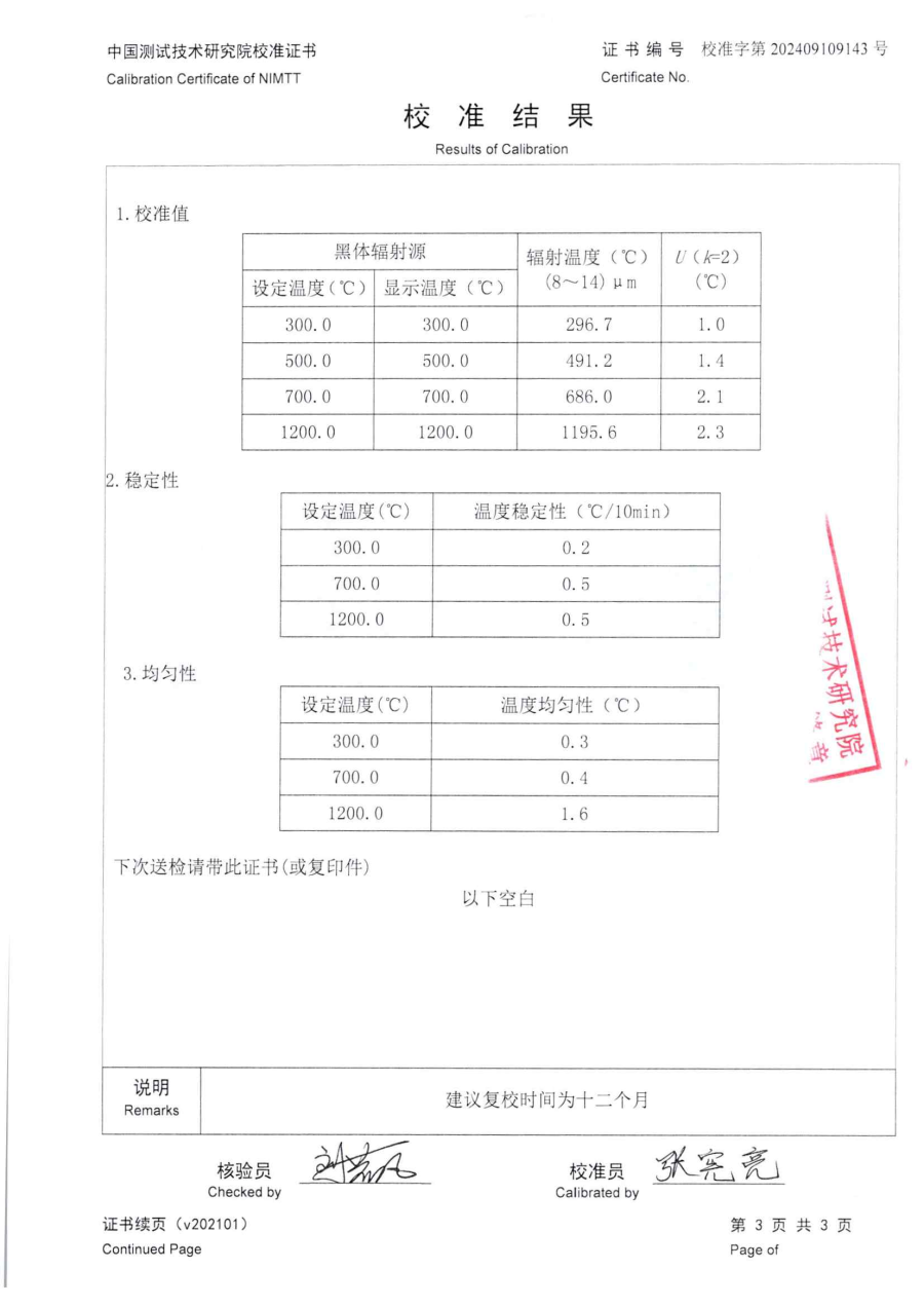 高溫腔式黑體校準證書(shū) 2024-10-21 本文被閱讀 7560 次