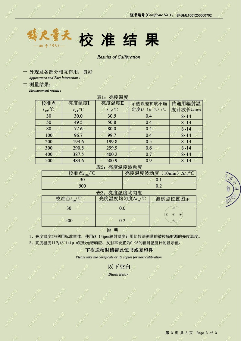 面源黑體爐(室溫+5-500℃)校準證書(shū) 2025-5-9 本文被閱讀 3396 次