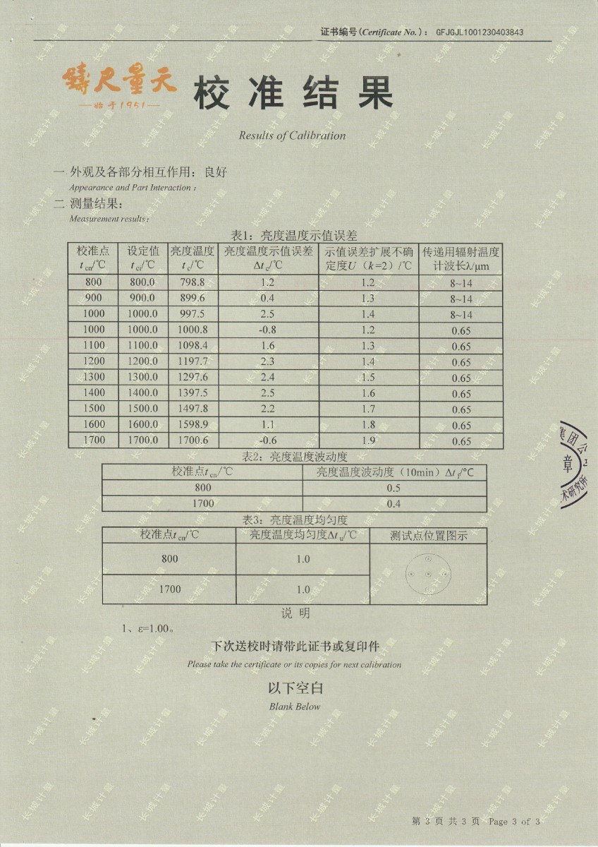 上一條:無(wú)錫英菲感知技術(shù)有限公司 高溫黑體 校準證書(shū) (2)下一條:高精度制冷恒溫槽(-80~100℃)校準證書(shū)